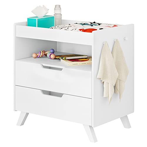 - 【Wickeltisch und Schrank 2 in 1】 Dieses Babymöbel ist sowohl ein Wickeltisch, als auch eine Kommode mit 2 Schubladen und 1 offenen Fach. Es ist ideal für Familien mit Säuglingen und kleine Kinderkrippen