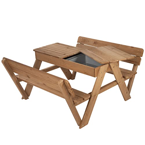 Coemo Outdoor Kindersitzgruppe – wetterfest Garten Picknicktisch aus Holz für Kinder für draussen – schöne Sitzgruppe inkl. Gartentisch & Sitzgarnitur Farbe Weiß/Teak