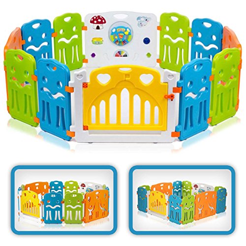 Baby Vivo Laufgitter Laufstall Baby Absperrgitter Krabbelgitter Schutzgitter für Kinder aus Kunststoff mit Tür und Spielzeug – Colors XL erweiterbar