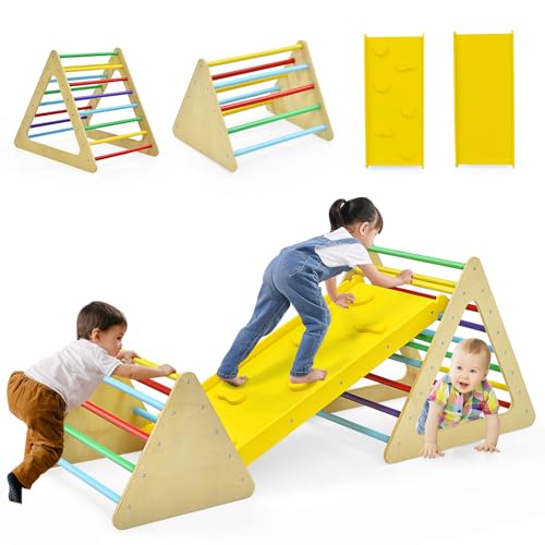 - 【3 in 1 Kletterset】Dieses Kletterset enthält 2 unterschiedlich große dreieckige Leitern und 1 Rampe zum Klettern und Rutschen, wodurch die Balance, Motorik und der Mut gefördert, sowie verschiedene Bedürfnisse erfüllt werden.