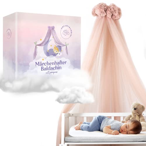 - PREMIUM KINDER & BABYBETT BALDACHIN: Der exklusive Betthimmel in Cremebeige besteht aus hochwertig atmungsaktivem 50d Hexagonal Mesh für eine angenehme Luftzirkulation im Raum. Die angebrachten Pompons am Kinderbett Baldachin sind ein wahrer Hingucker und verleihen dem Schlafzimmer eine wohnlich moderne Atmosphäre.