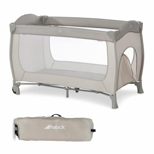Hauck Reisebett Sleep N Play Go Plus 120 x 60 cm, für Babys und Kinder ab Geburt bis 15 kg, mit Rollen, Leicht, Kompakt Faltbar, Inklusive Transporttasche und Faltboden, Schlupf, Beige