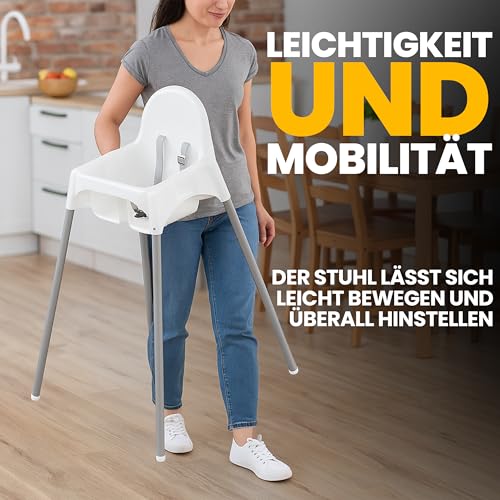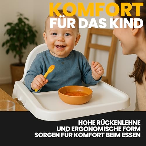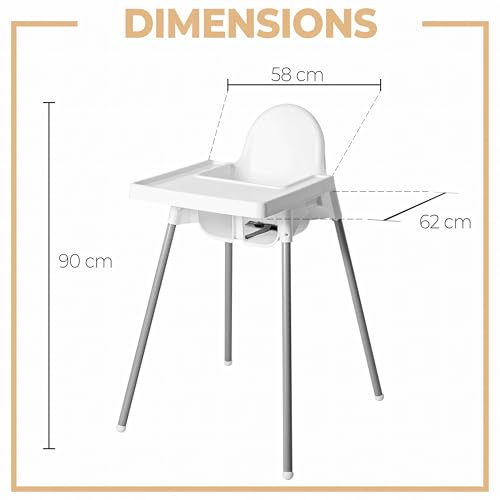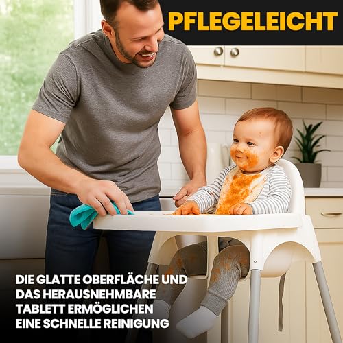 - Leicht zu reinigen – Dank der weißen Farbe Kleinkind Tisch Sitz ist es sehr einfach, sie sauber zu halten, wischen Sie sie einfach nach dem Essen mit einem feuchten Tuch ab, um sie lange sauber zu halten. Stuhl für Säuglingsernährung kann mit oder ohne Tablett verwendet werden. Dank der Höhe des TreppenhochstuhlJugendstuhls von bis zu 90 cm erreicht er problemlos die meisten Tische im Haus.