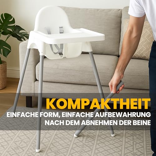 - Leicht und kompakt – Dank des sehr geringen Gewichts ist Hochstuhl sehr leicht zu bewegen, sodass Sie ihn zum Beispiel in den Sommerurlaub oder bei einer Übernachtung zu Freunden oder Familie mitnehmen können. Der Fütterungsstuhl lässt sich sehr leicht zusammen- und auseinanderklappen, wodurch er im aufgeklappten Zustand sehr wenig Platz einnimmt. Sie können es sicher im Auto für eine Reise oder in einem Rucksack oder einer Reisetasche verstauen.