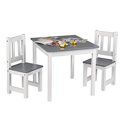 - GROSSE TISCHPLATTE: Die Tischplatte mit den Maßen 60×50 cm bietet viel Platz für 4 Kinder gleichzeitig. Dieses Kindermöbel-Set enthält 1 Tisch und 2 Stühle. Empfohlen für Kinder ab 2 Jahren