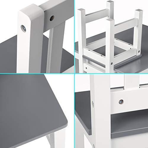 - MULTIFUNKTIONAL: Der Tisch mit Stühlen für Kinder (Tisch: 60x48x50 cm, Stuhl: 25x55x25 cm) kann im Kinderzimmer, Spielzimmer, Kindergarten als Esstisch, Lerntisch, Spieltisch usw. verwendet werden